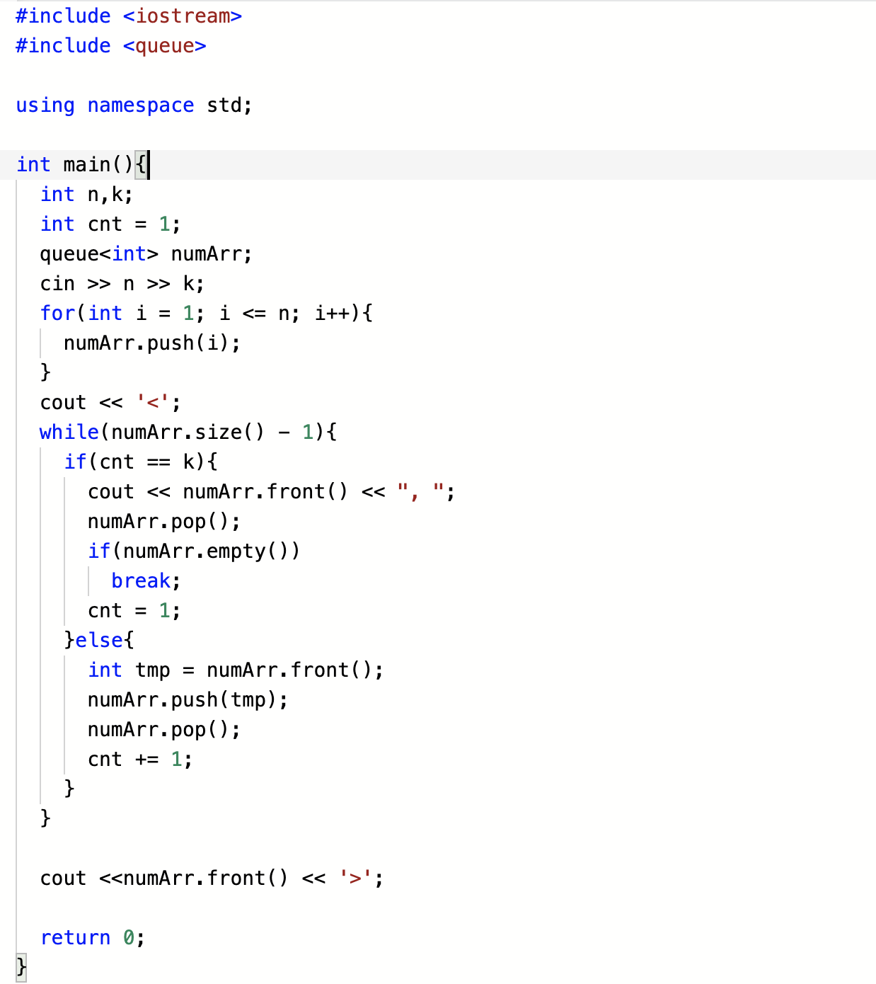 기본 아이디어 : 큐의 앞의 수를 다시 뒤로 계속 보내면서 출력 해야 될때에 만 pop() 으로 제거한다.