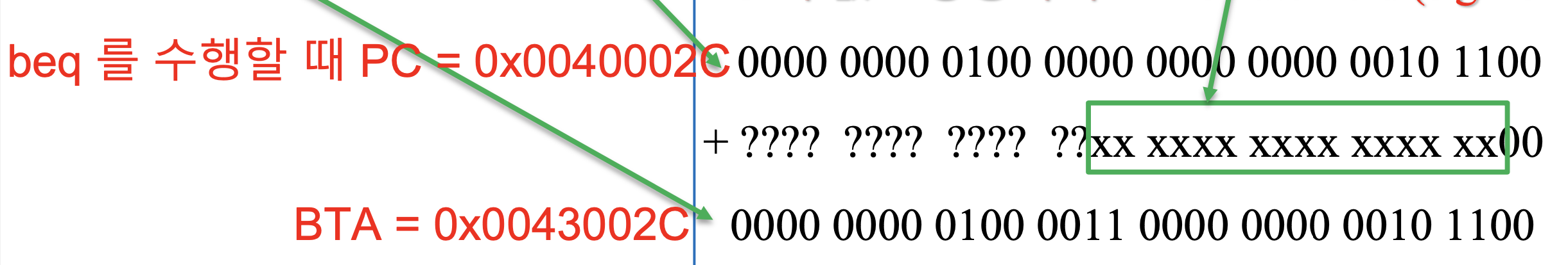 앞의 6bit에는 명령어 코드가 들어가게 된다. 뒤의 BTA의 계산은 위와 같이 이루어진다.