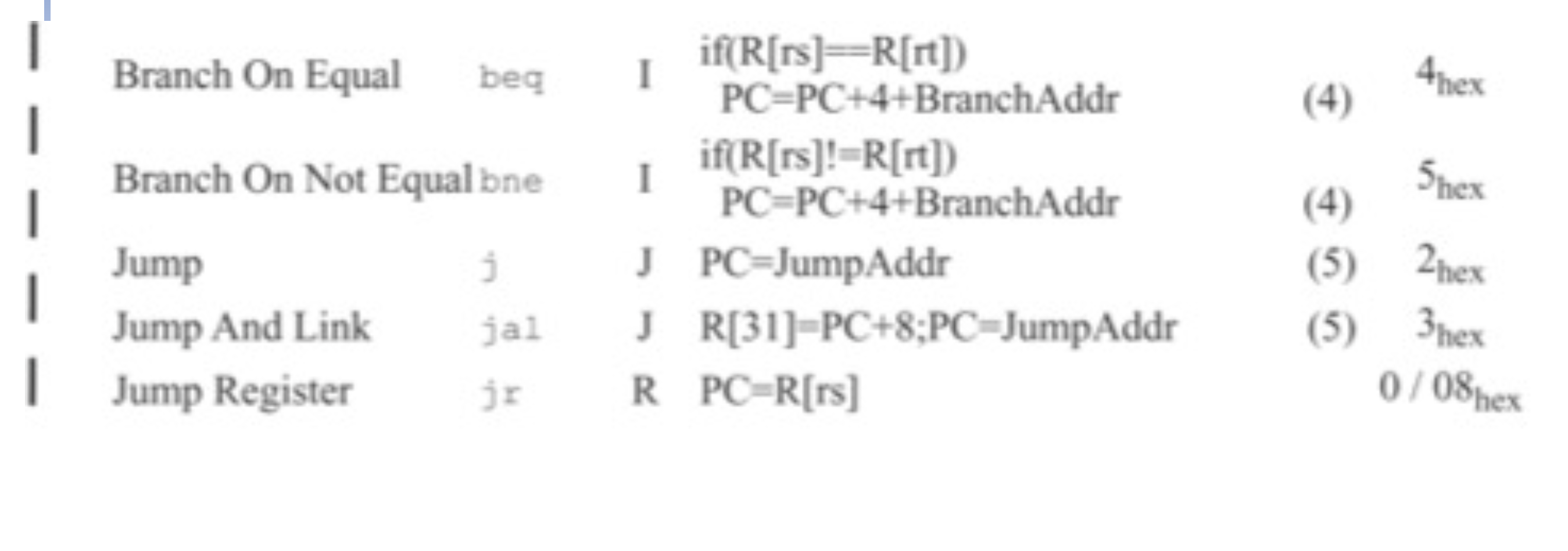 종류로는 jr, j, ,jal, beq, bne 가 있는데 모두 Label 로 넘기는 기능을 하는 instructions 들이다.