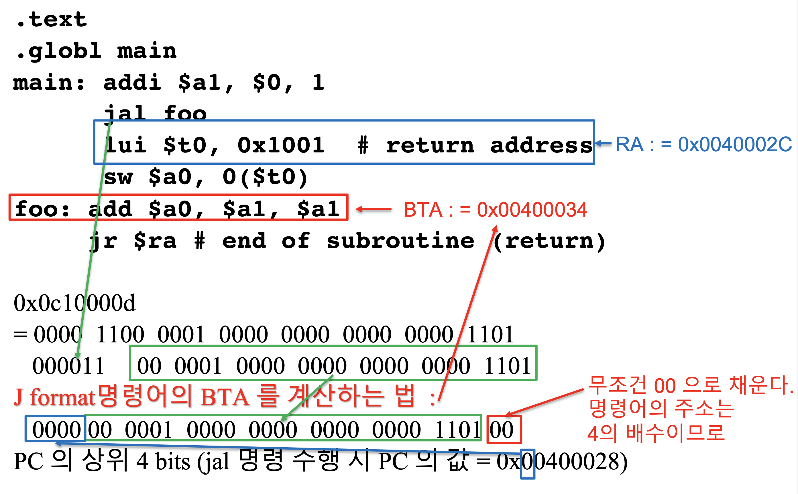 이때의 return address에는 jal 명령라인의 다음 줄의 명령어 메모리 주소가 들어간다.