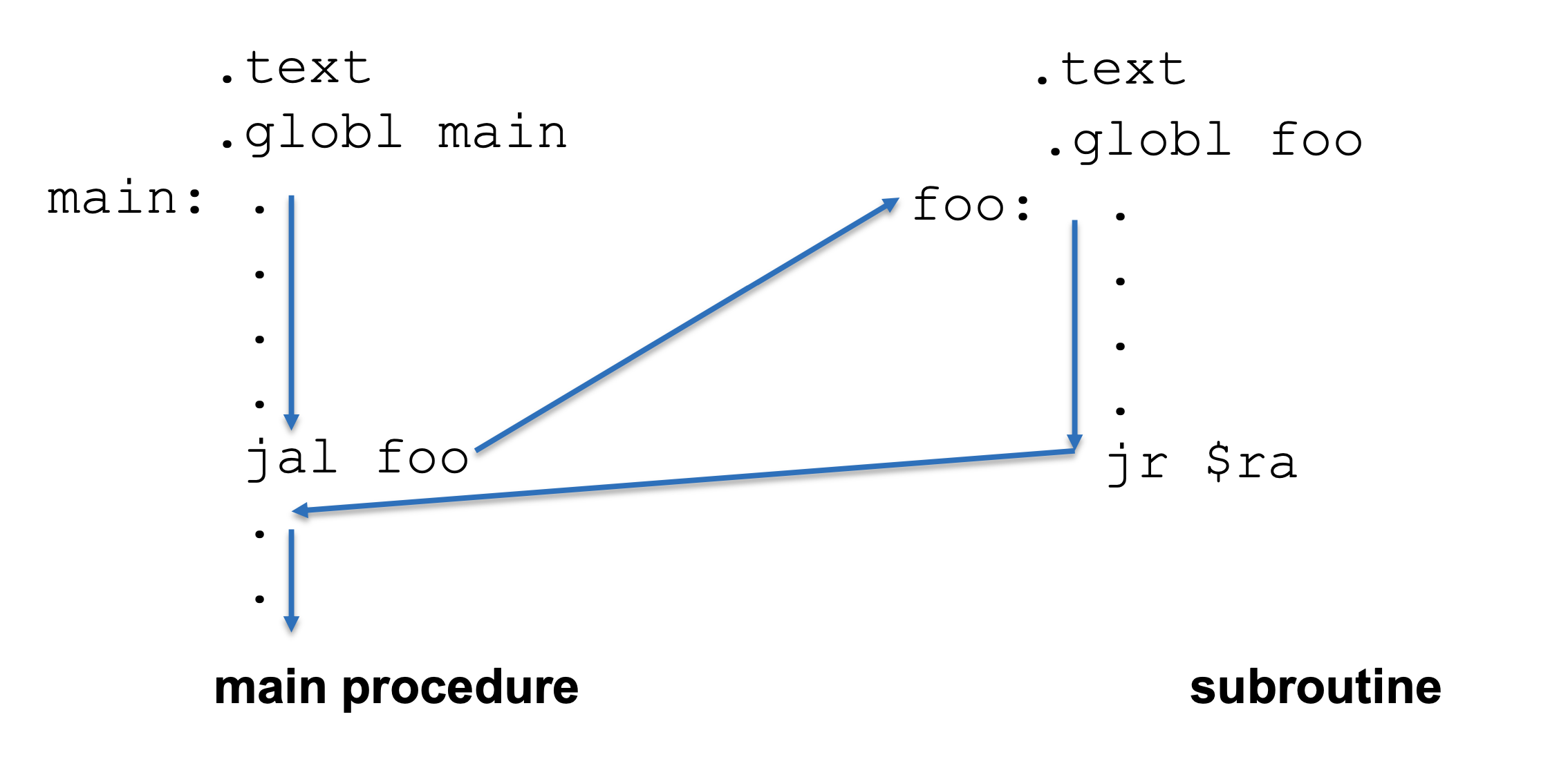 $gp 는 global pointer, $sp 는 stack pointer 이다. $fp 는 frame pointer, $ra 는 return address 이다.