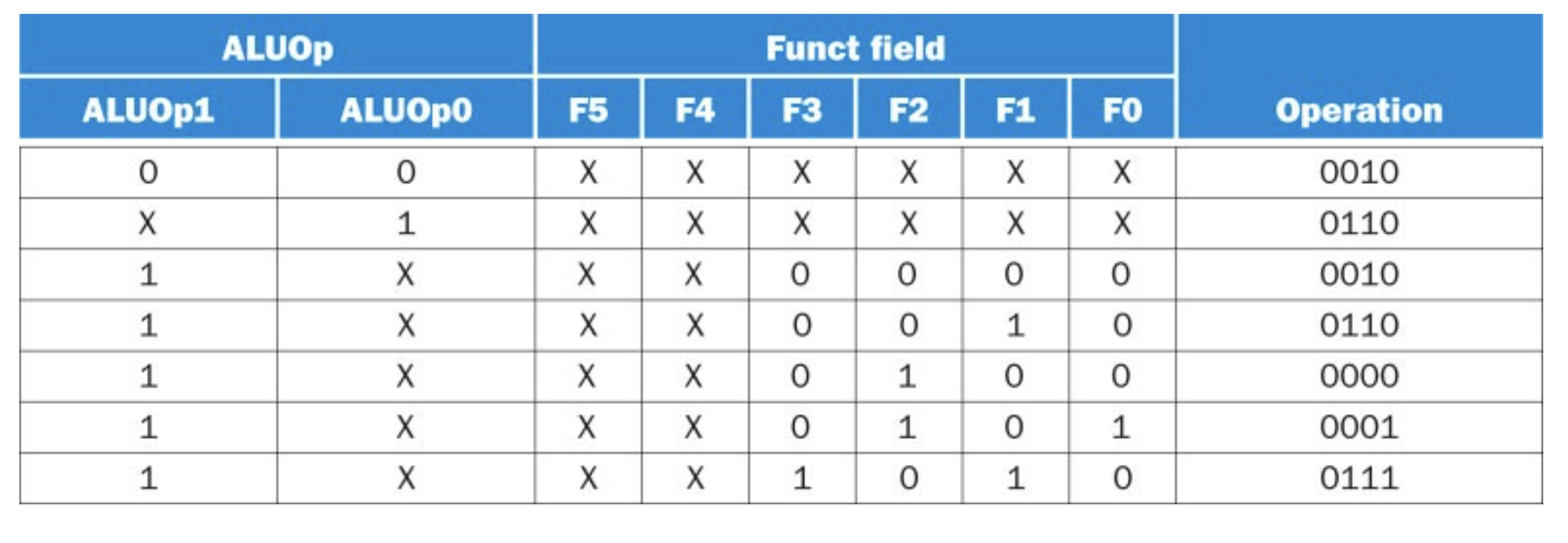 한편, 아래는 alu operation의 진리표이다.