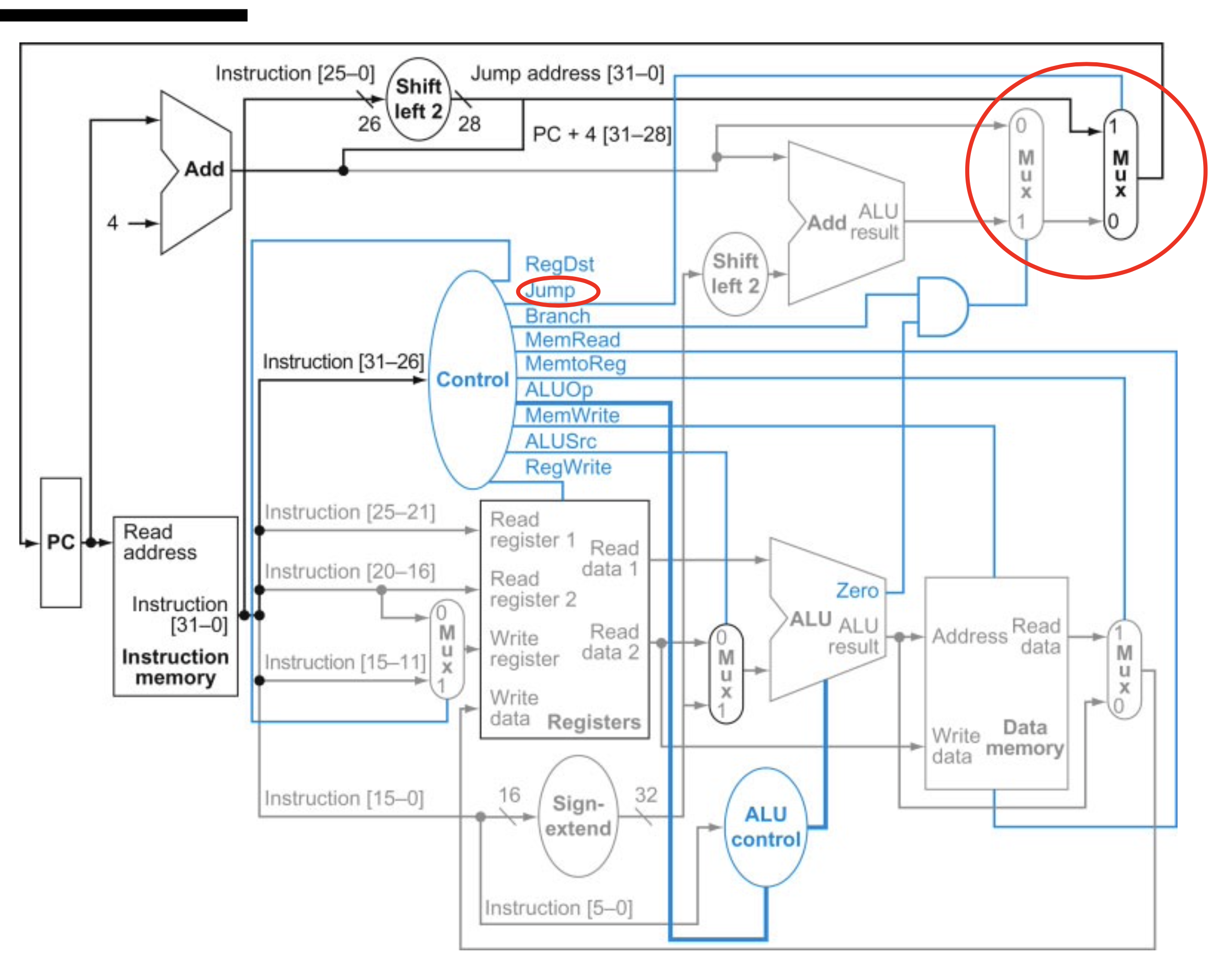 jump instruction의 경우는 위에 mux를 달아주면 된다.