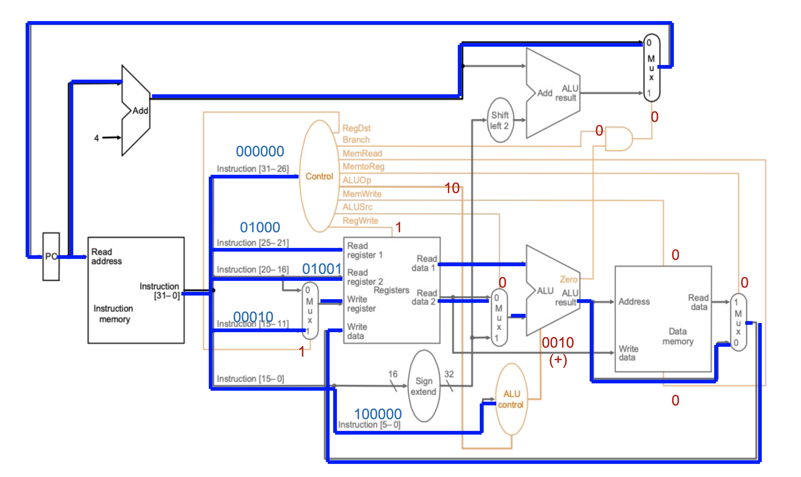 위는 add instruction의 계산 과정을 나타낸 그림이다.