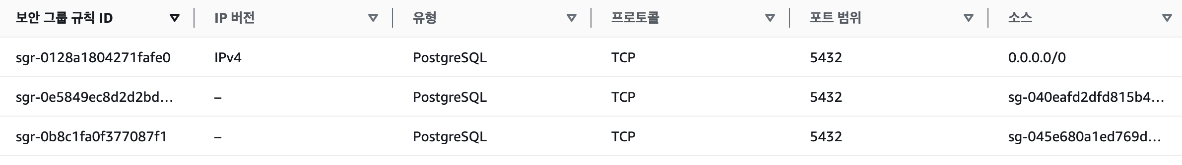 aws 의 rds 접속에 있어서 오늘 삽질한 내용을 써보겠다. aws에 대한 확실한 지식이 없이 블로그 보면서 설정을 따라하다 보니 확실히 error가 대응이 안되는것 같다. 오늘의 error는 rds 생성후에 내 로컬에서 rds에 접속하려 했는데, 포트를 열어주었음에도 불구하고 connect error 가 발생하였습니다. 이때 블로그를 보고 설정을 하며 소스를 ec2의 기존 보안 그룹을 선택하였고 해당 보안 그룹에 모든 접귾을 허용했기 때문에 접속이 가능 할 것이라고 생각했습니다. 하지만, 소스는 rds에 접근하는 주소로 해당 ec2의 주소가 됩니다. 따라서 내 로컬에서 접근하려 할 때 접근이 불가했던 것이었습니다. 따라서 내로컬에서 직접 접근하기 위해 rds 보안 그룹 편집에서 직접 모든 퍼블릭을 허..
